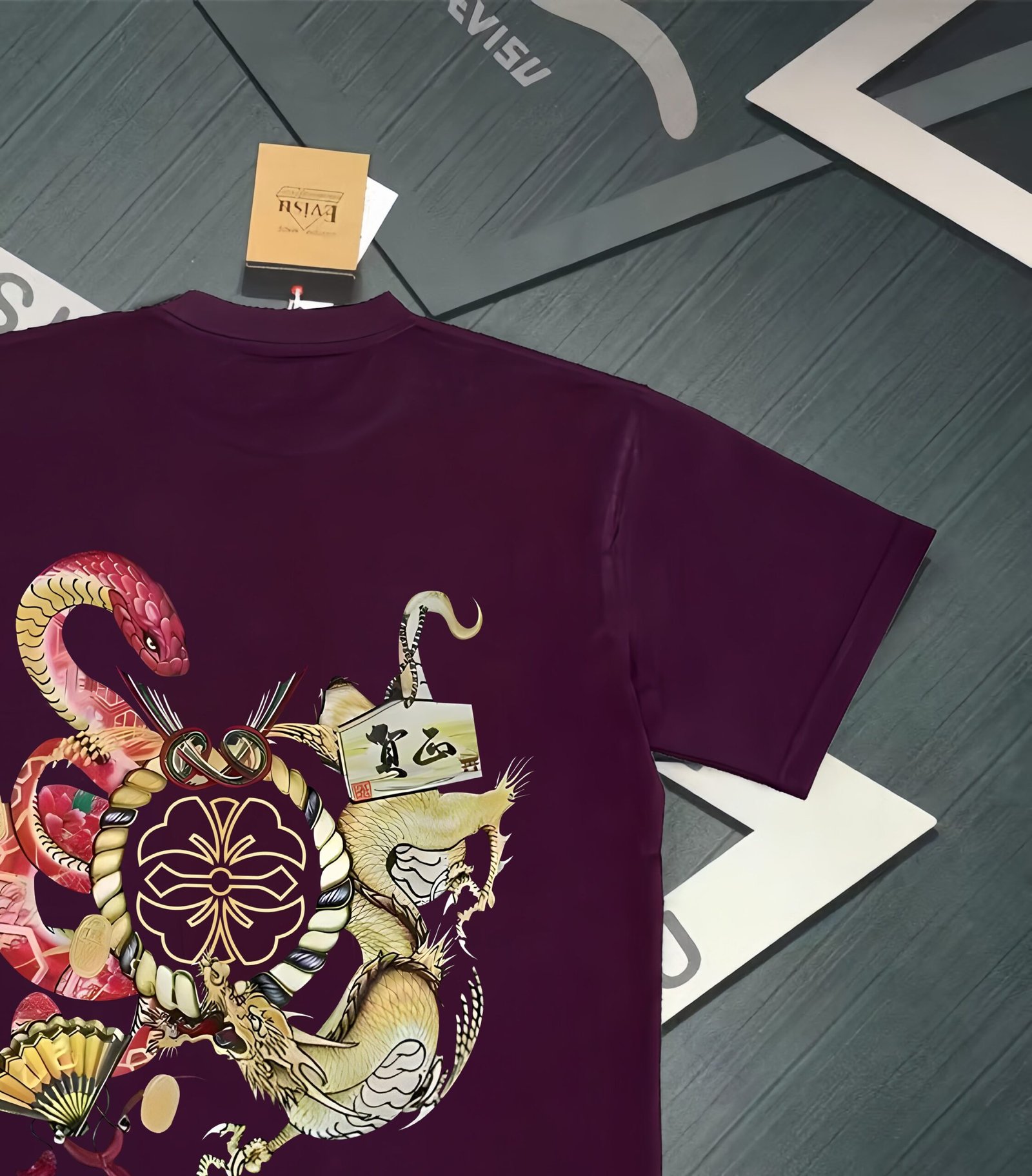 EVISU Fushen 2025 Spring New Men’s Teng Snake and Dragon Letter Printing