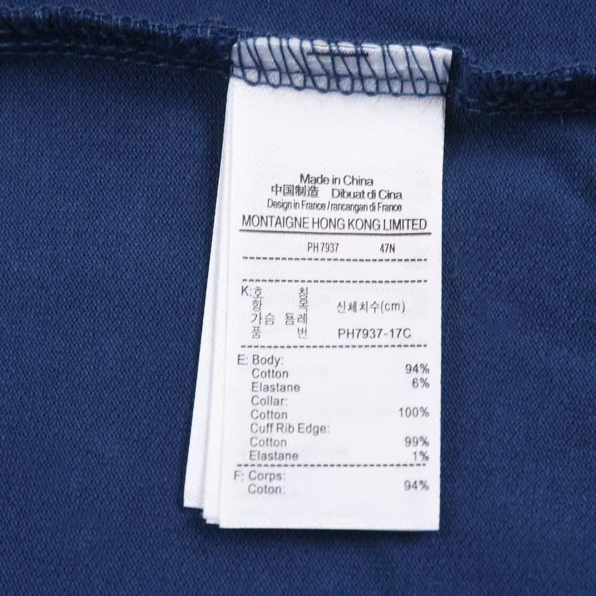 - Ribbed polo collar and mother-of-pearl buttons