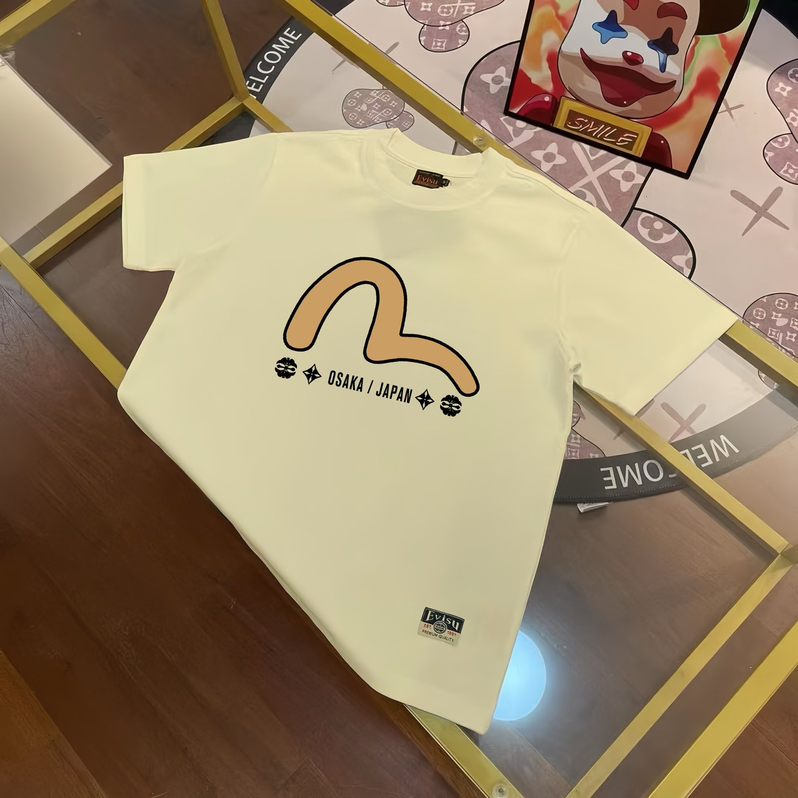 Snake Year Limited EVISU Fushen 2025 Spring New Men’s Teng Snake and Dragon Letter Printed Casual Loose Short Sleeves
